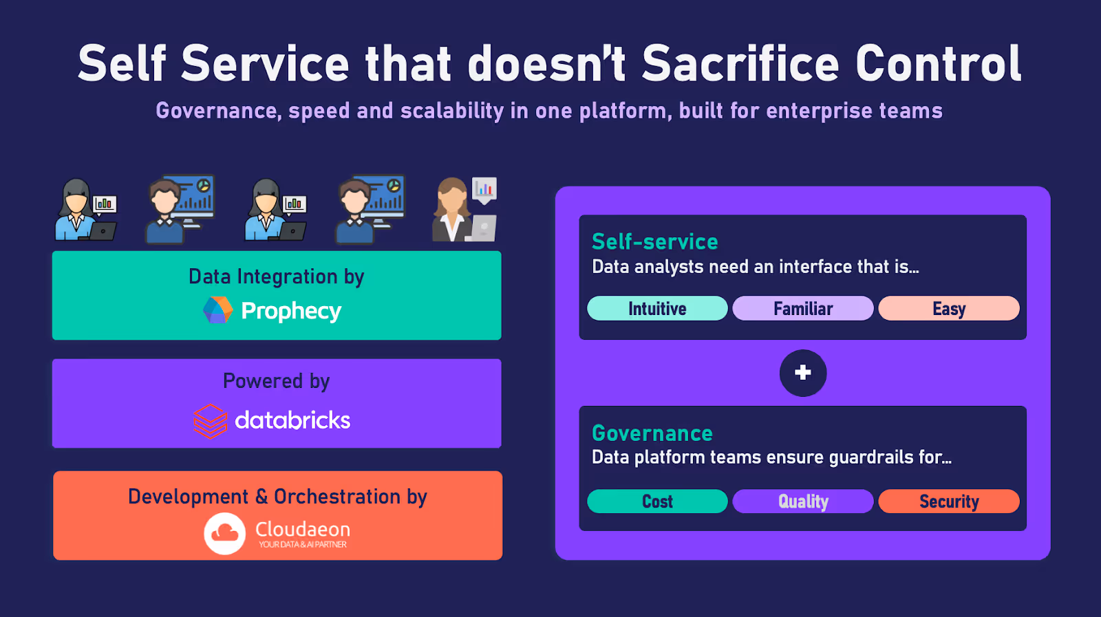 Until now, most solutions tried to fix one side of the problem. Cloudaeon have used Prophecy and Databricks to solve both.